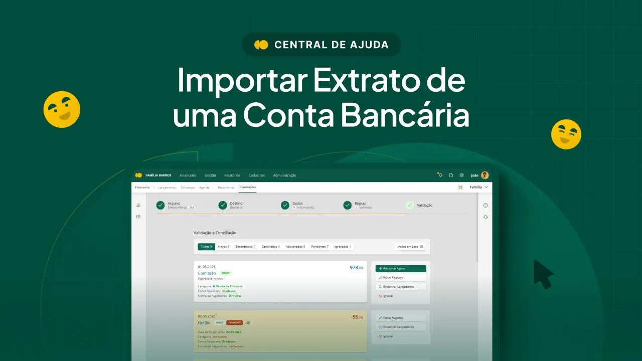 A importação de lançamentos traz maior praticidade no momento de registrar sua movimentação bancária, podendo realizar a conciliação entre lançamentos no sistema e do extrato bancário. Também permite a importação de registros de outros sistemas ou planilhas, a partir de arquivos Texto e CVS.