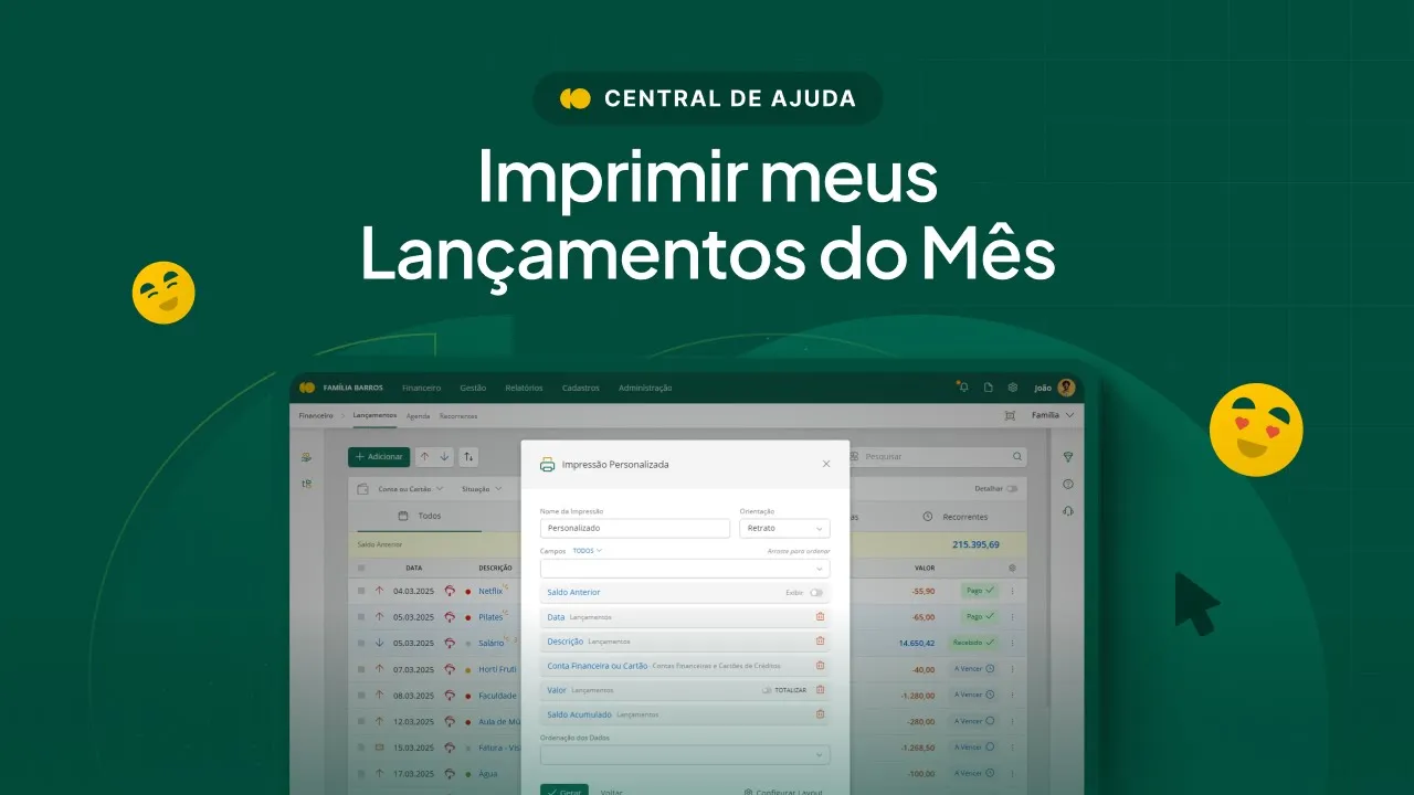 Home Assuntos Impressão e exportação de dados Artigo Imprimir meus lançamentos do mês Assista a vídeoaula ou confira as instruções logo abaixo No seu menu Financeiro -> Lançamentos ou Recorrentes, clique no ícone de impressão. Lá você terá as opções Impressão Padrão, Personalizado e Configurar Modelos.Na opção Impressão Padrão, você pode optar por Visualizar ou fazer o Download dos registros. Nas demais você pode configurar o formato da impressão conforme desejar.
